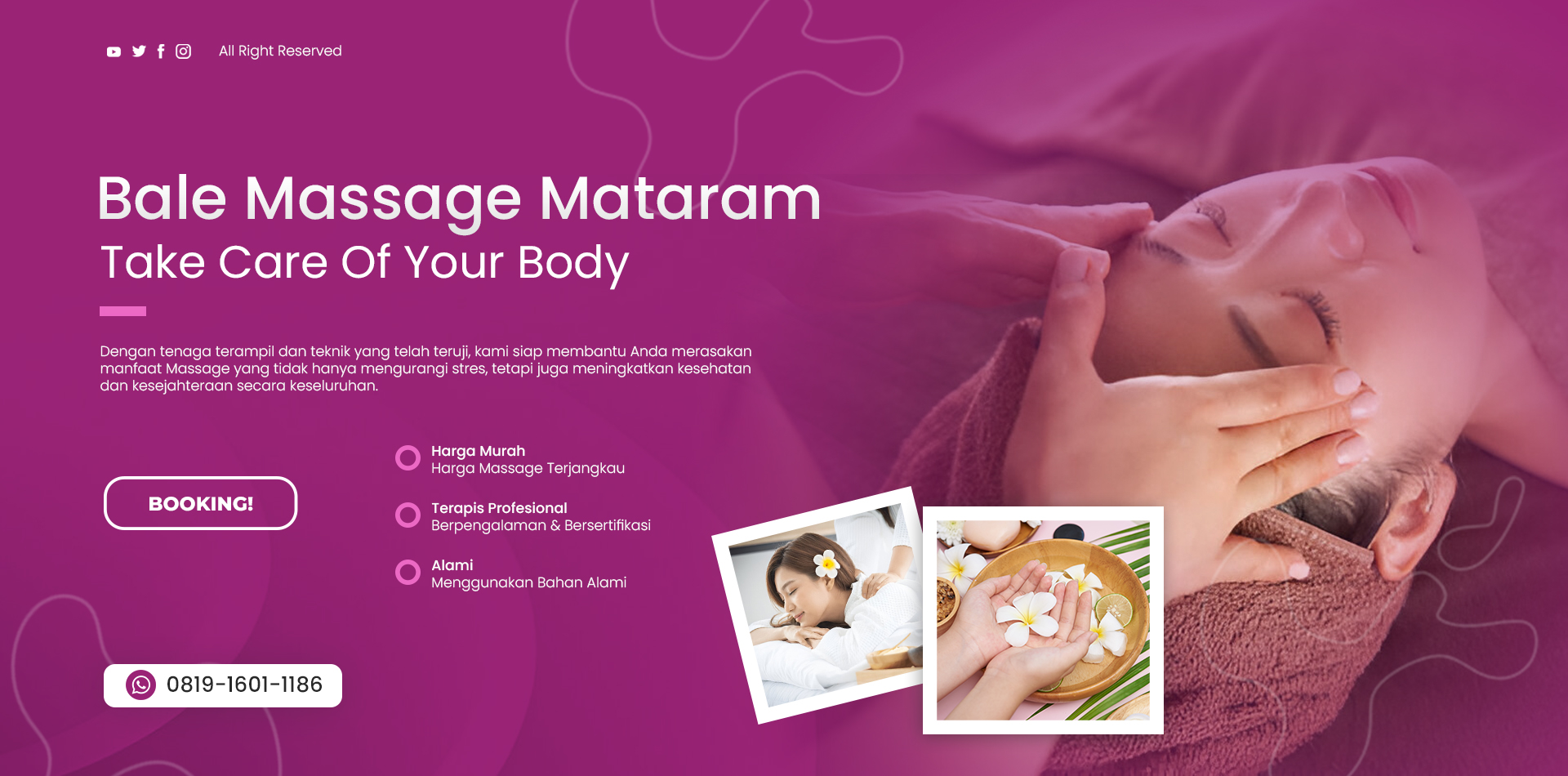 Bale Massage Mataram adalah tempat perawatan tubuh yang hadir untuk memberikan kenyamanan dan relaksasi optimal bagi setiap pelanggan. Kami menawarkan berbagai layanan pijat tradisional dan terapi tubuh dengan menggunakan teknik yang sudah teruji dan bahan alami, memberikan pengalaman yang menyegarkan dan menenangkan. Di Bale Massage Mataram, kami percaya bahwa perawatan tubuh yang baik dapat meningkatkan kualitas hidup, mengurangi stres, dan menjaga kesehatan fisik serta mental.